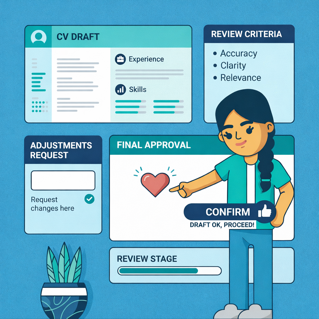 This ensures the final CV accurately represents your experience and aligns with your personal preferences before it is finalized.
