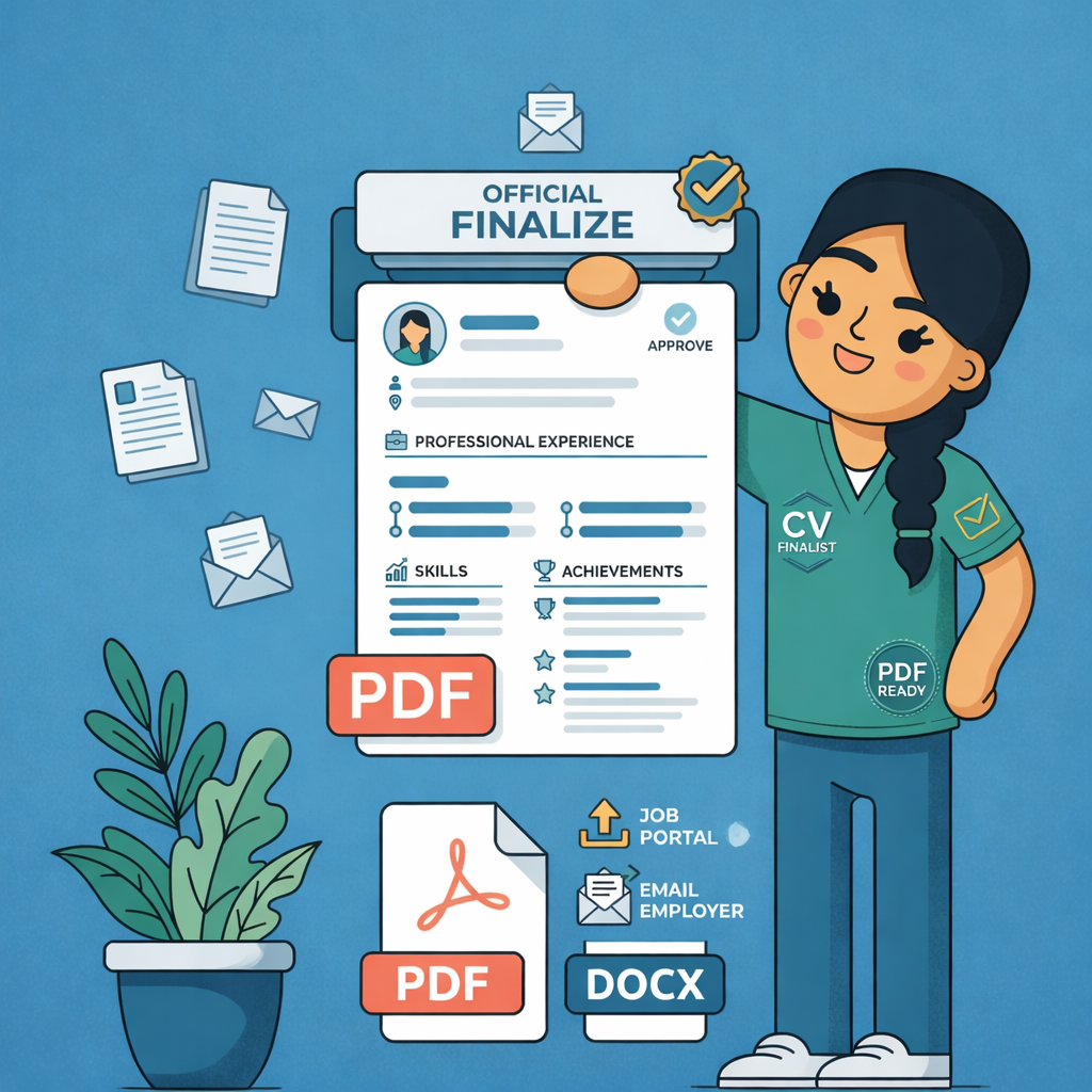 After you approve the draft, the agent will prepare the final version of your CV. You will receive a professionally formatted PDF ready for job applications, sharing with employers, or uploading to recruitment platforms.